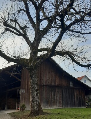 Der "runde Fleck" am Baum ist eine perfekte Verwachsung eines frühzeitig abgeschnittenen Astes. Der Ast wurde abgesägt um die Länge des Stammes zu beeinflussen. Der Nussbaum hat die Schnittstelle perfekt überwallt. Der Baum wurde richtig wertgeastet, heisst der Ast wurde frühzeitig abgeschnitten und somit wurde die Länge des Stammes beeinflusst. Der Nussbaum hat die schnittstelle perfekt überwallt. Der Baum wurde richtig wertgeastet, heisst der Ast wurde frühzeitig abgeschnitten und somit wurde die Länge des Stammes vom Menschen beeinflusst. Das Ziel ist ja prächtige Nussbäume !