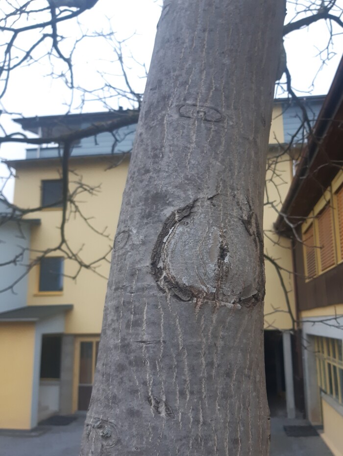 - bei diesem Baum wurde ein grosser Ast abgesägt
